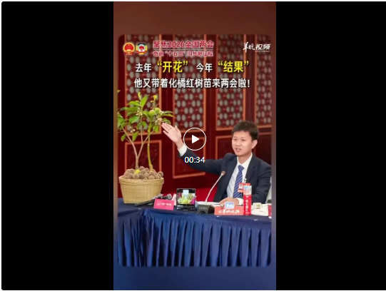 去年参加两会时,廖志略带着一棵“开花”的化橘红树苗,今年他专程带着一棵“结果”的树苗,希望通过两会平台让化橘红“香飘四海”。