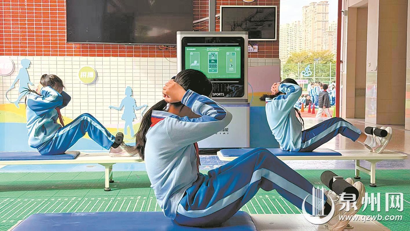 “预备,跑!”在石狮市第七实验小学的体育课上,随着体育老师一声令下,学生们冲出起跑线,一旁的AI设备屏幕实时记录下每位学生的跑步数据。架空层的运动区域里,不少学生排队进行立定跳远测试,设备自动记录成绩,有的学生看到结果后,还想再试一次,刷新个人最好成绩。该校党总支书记黄增加介绍,这些设备可用于立定跳远、跳绳、跑步、仰卧起坐等多个项目,还能实现回放动作、指导运动姿势。