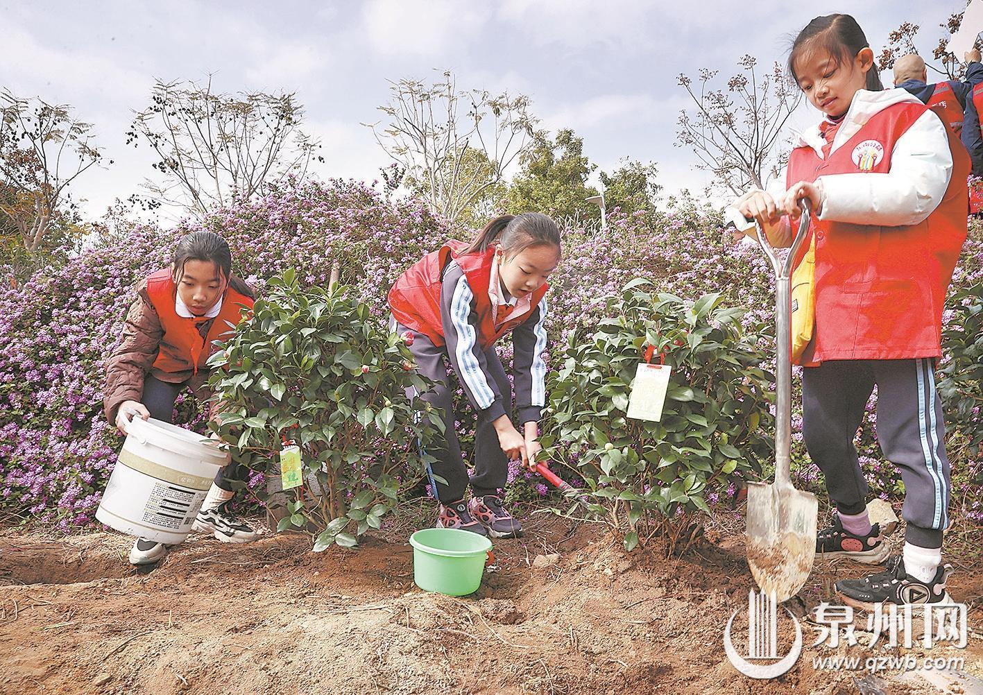 “看着那抹嫩绿,我想待到来年春天,这里肯定是一路花香!心里泛起甜丝丝的期待。”这是泉州市第三实验小学601班的林铮恒去年参加植树活动后写下的满分作文片段。