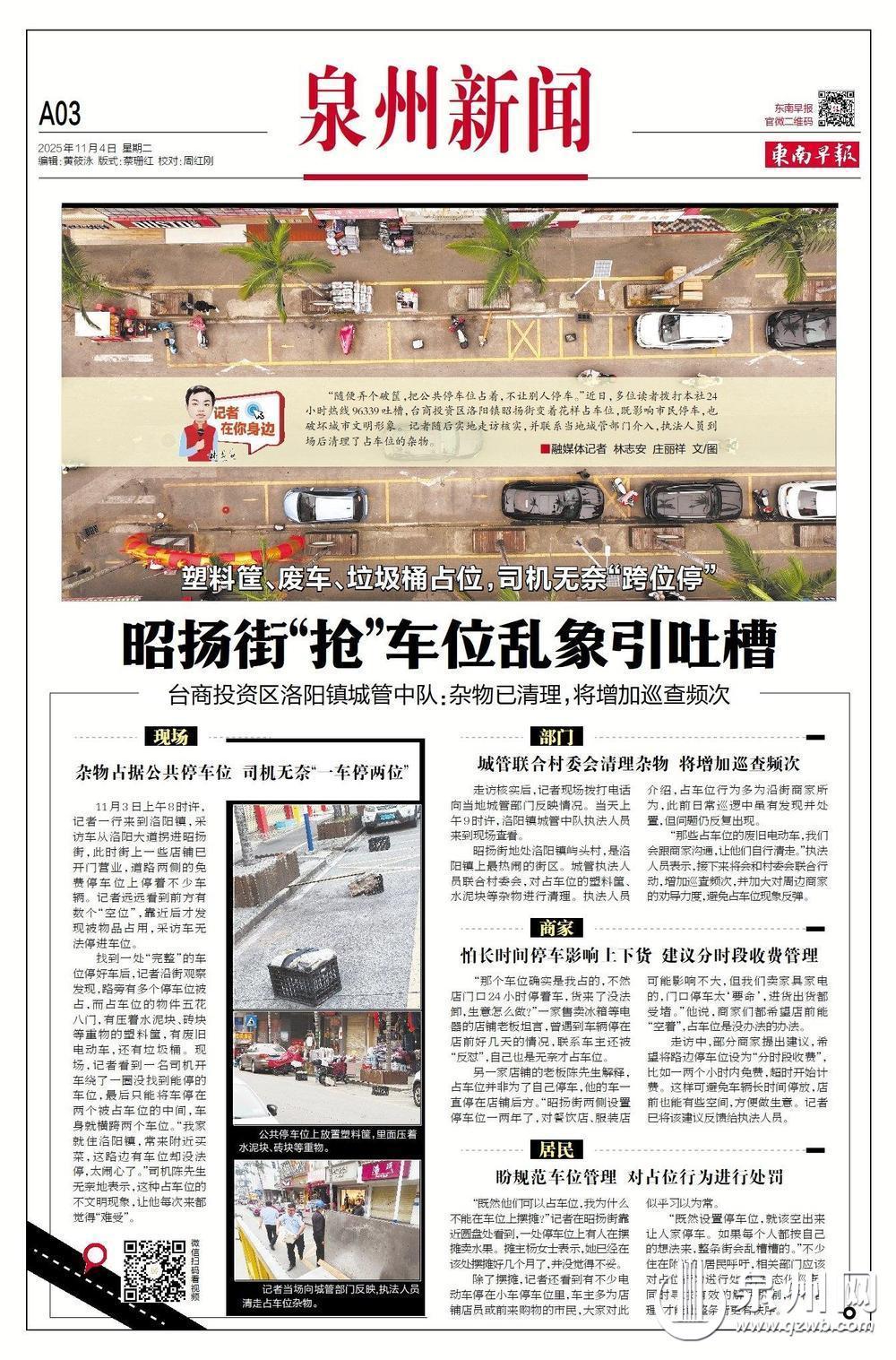 采访中,多位店主表示自己是屿头村人,已经在该处经营店铺20多年,就住在楼上。执法队执法人员坦言,一些商户用杂物占着停车位不让其他车辆停放,其实是为了方便自家车辆随时有位置停放。