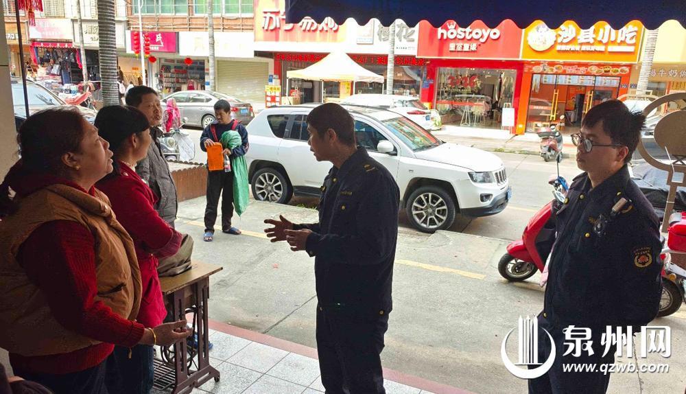 执法人员走进附近店铺了解情况