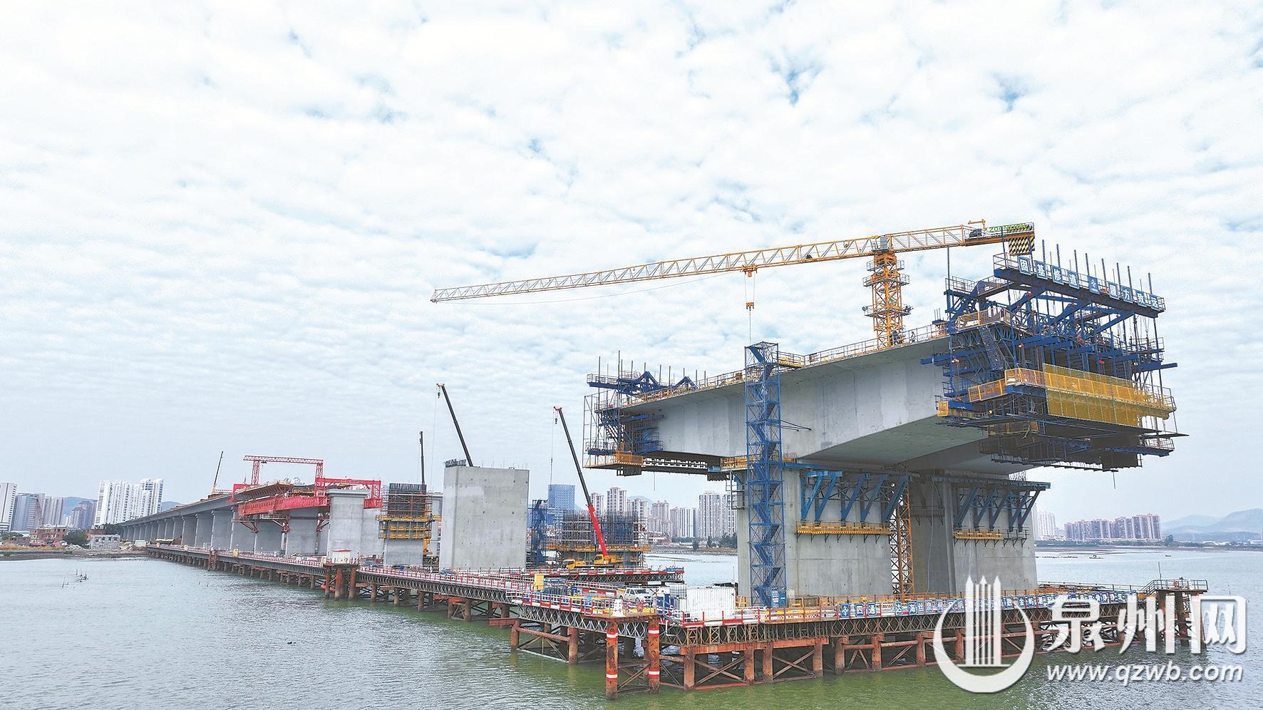 连日来,泉州金屿大桥工程各作业面齐头并进抢进度,A1标段桩基、承台、路面基层等15项工程均已完成,墩柱、现浇箱梁完成率超九成,即将进入最后冲刺阶段;A2标段主体结构施工全面铺开,桩基、墩帽、现浇箱梁等部分工程有序推进。