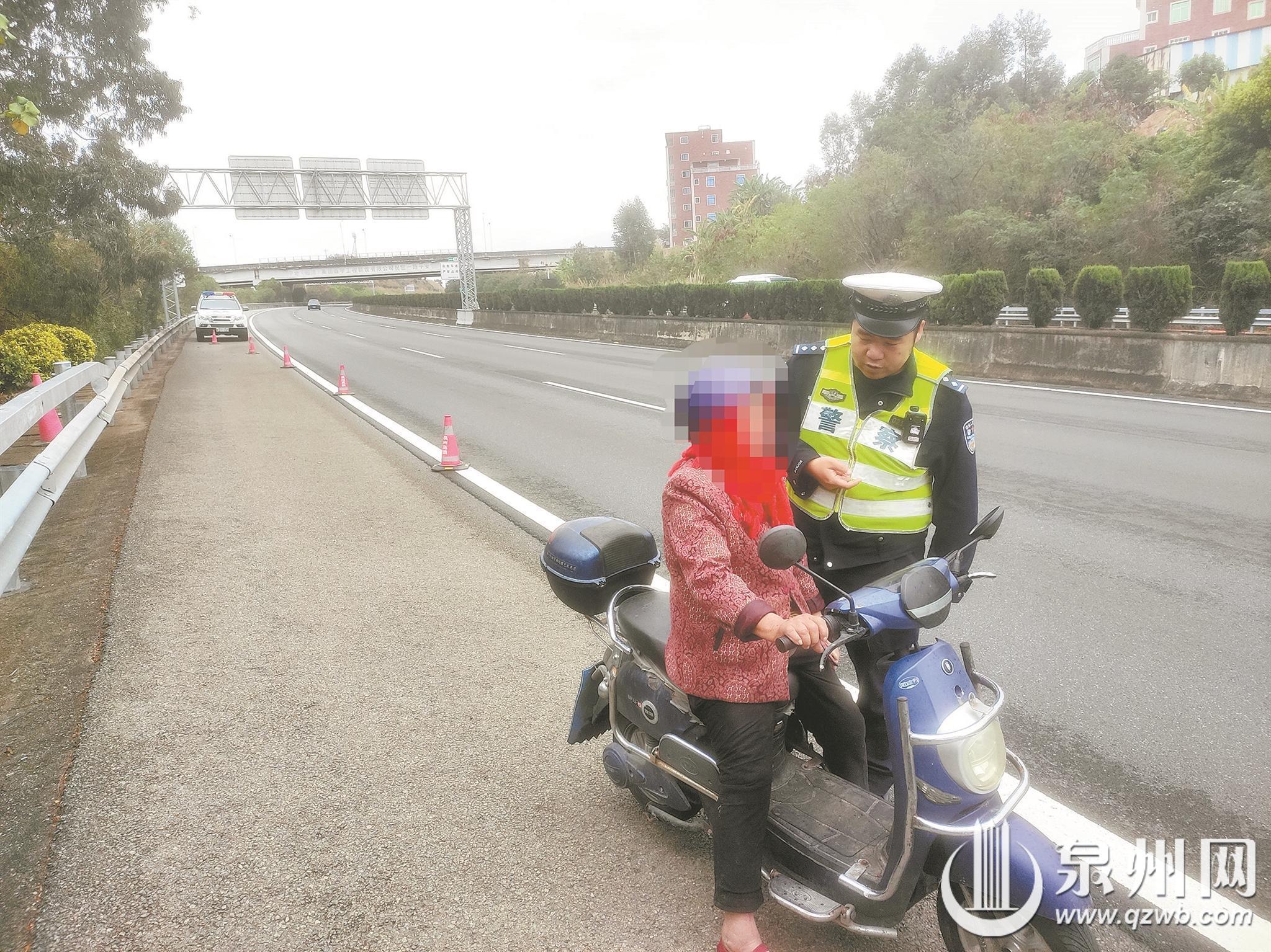 泉州网3月11日讯(融媒体记者林志安 通讯员刘闽华 文/图)近日,一位七旬阿婆骑着电动车误闯泉南高速公路,高速交警接到报警后快速前往处置,及时消除了路面安全隐患。