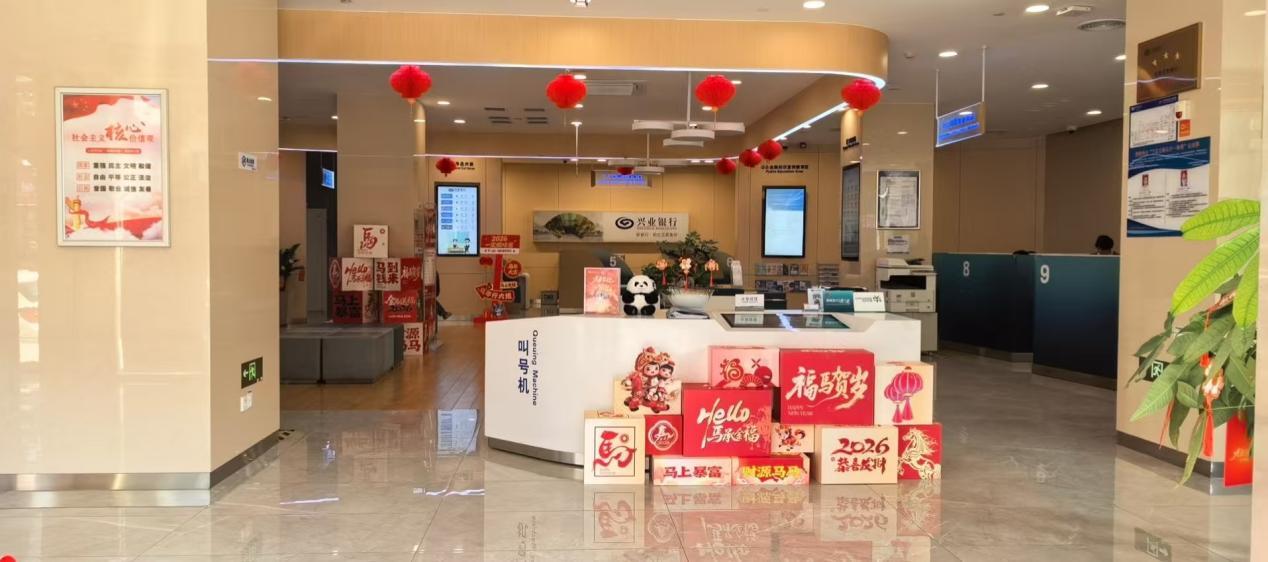 分行辖内所有网点同步进行了新春及元宵氛围布置,大红灯笼高悬、喜庆窗花点缀,将节日的温馨融入到网点的每一个角落。节日期间,各网点还为进店客户送上元宵汤圆,让客户感受到浓浓的节日祝福。同时,依托“兴公益”惠民驿站,各网点持续提供便民服务,设置“爱心窗口”、配备老花镜、医药箱、轮椅等便民物品,为老年客户、特殊群体提供更加贴心的服务体验。
