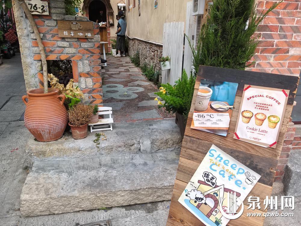 泉州老城区花巷咖啡店的门前摆放着新品介绍