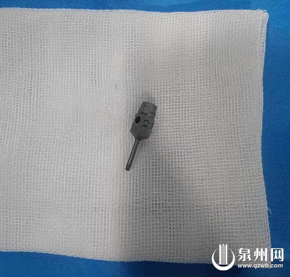 泉州网3月13日讯(融媒体记者苏凯芳 通讯员郭良福 文/图)近日,一男子在牙科治疗时,不慎将一枚长约2厘米的金属牙科器械误吞入胃中,这块坚硬异物随时有可能刺破胃壁酿成穿孔、感染等致命风险。所幸泉州市第一医院消化内镜中心医生利用内镜微创技术,仅耗时数分钟便将异物完整取出,让男子转危为安。