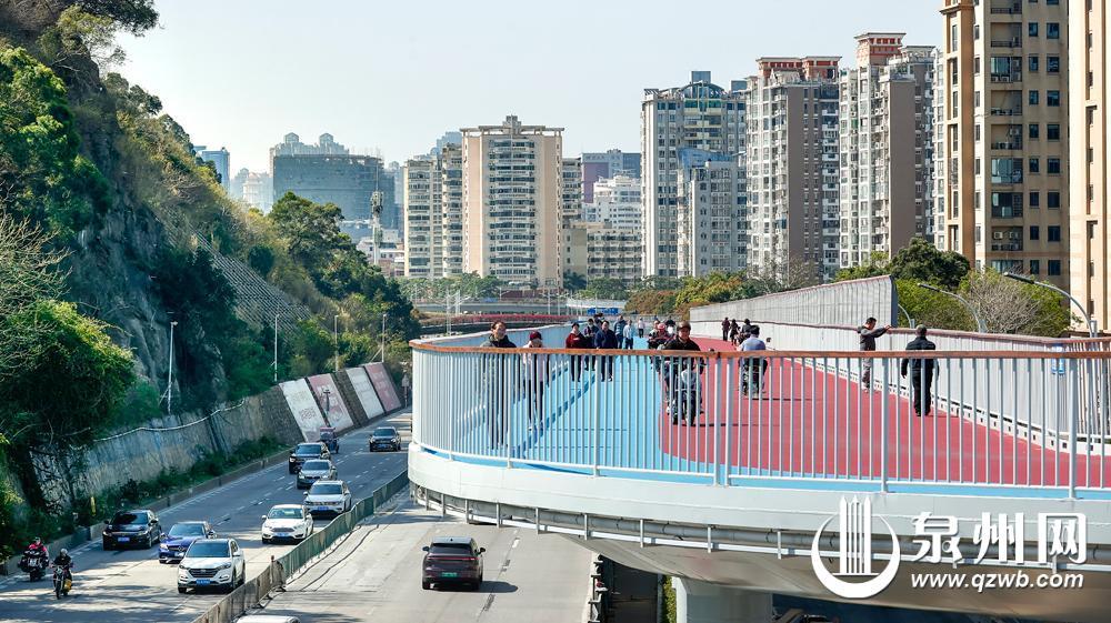 泉州网3月13日讯(融媒体记者 张晓明/文 林劲峰/图)车流滚滚,是都市奔腾的“快”节奏;闲庭信步,则是生活温润的“慢”乐章。在泉州中心城区的交通主动脉——坪山路,这两种场景正通过一座新落成的“空中廊道”实现和谐交融。作为泉州“中环城贯通工程”的关键一环,坪山路北段快捷化改造工程正有序推进。昨日,记者实地探访发现,春节前正式开放的慢行天桥不仅解决了人车混行的老难题,更以其亮眼设计,成为市民争相打卡的城市新地标。