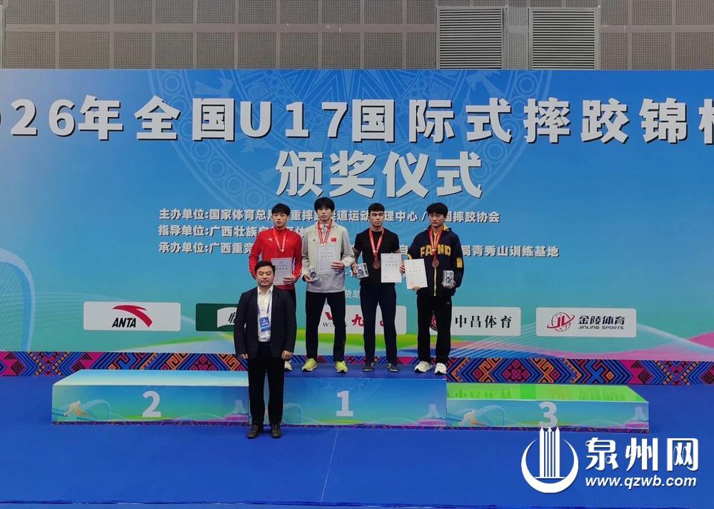 泉州网3月13日讯(融媒体记者许钹钹 通讯员黄欣萍 文/图)记者从泉州市体工队了解到,在3月7日至13日于广西南宁举行的2026年全国U17国际式摔跤锦标赛中,泉州5名参赛运动员斩获了1金、1银、2铜的好成绩。