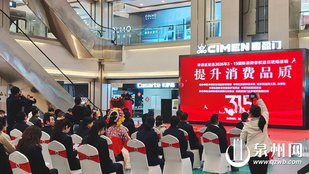 泉州网3月14日讯(融媒体记者邱丰 通讯员黄飞鸿 文/图)3月13日上午,丰泽区举办2026年“3·15”国际消费者权益日现场活动,并启动“提升消费品质”年行动。丰泽区市场监管等多个职能部门的负责人及行业协会、企业代表参加活动。