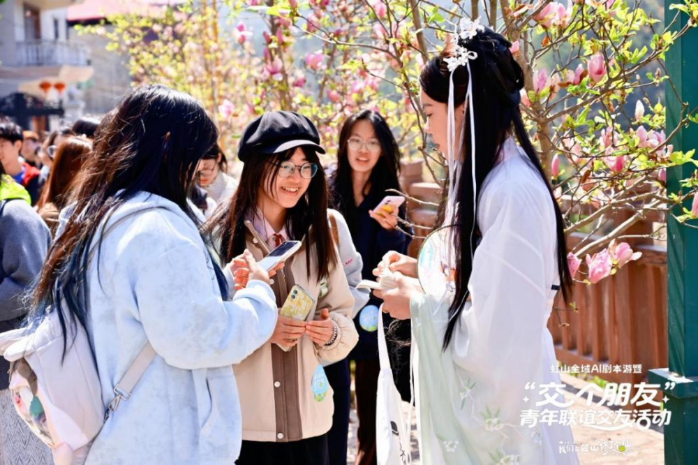作为本次活动的核心亮点之一,“虹山全域AI剧本游”暨“交个朋友”青年联谊交友活动吸引了众多青年参与,现场人头攒动、活力满满,欢声笑语与春日花香交织成动人乐章。