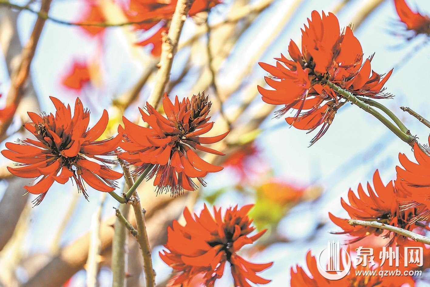 3月正是刺桐花开的季节。泉州城市森林公园刺桐专类园内多个刺桐品种花开正盛、生长态势良好,独特的刺桐花海成为泉州生态新景观,吸引了大批市民前来打卡观赏。