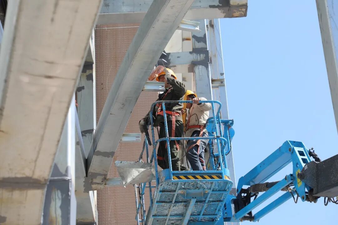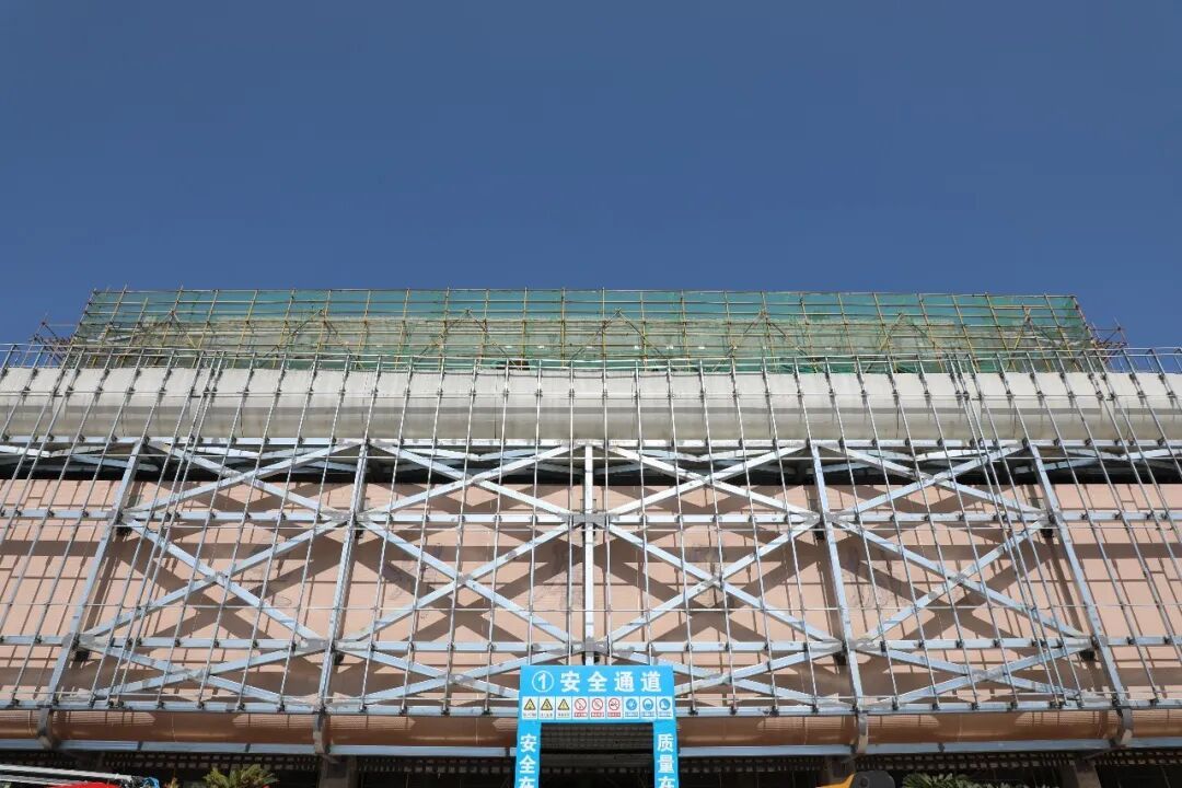 在项目施工现场,泉州展览城主馆外立面已被一根根纵横交错的钢构件“包裹”,仿佛穿上了一件钢铁“外衣”。随着钢结构的骨架逐步搭建完成,这座老地标正褪去旧面貌,展露出极具辨识度的新轮廓。现场,工人们正在有序进行钢材焊接、门窗安装等作业,一派繁忙景象。