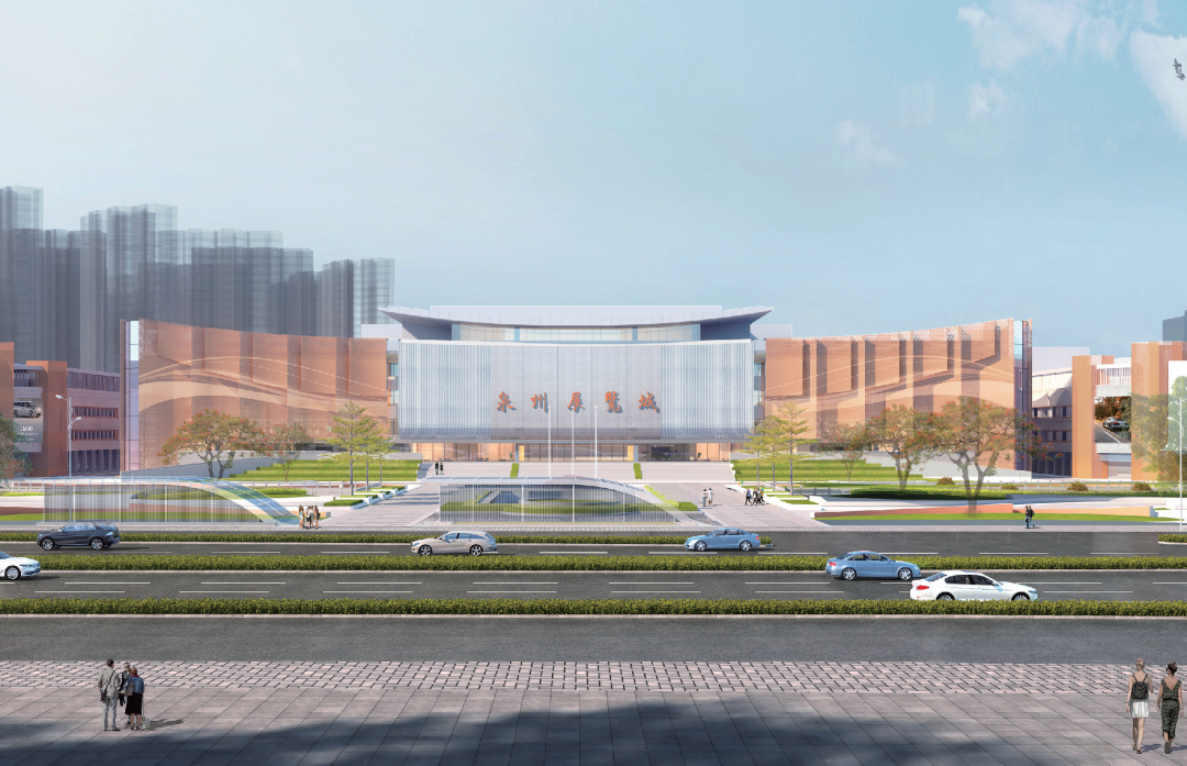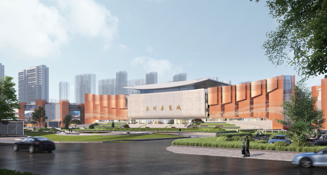 据介绍,改造项目内容涵盖展馆外立面改造、南迎宾广场景观及园区内部道路提升等,涉及外墙钢结构及幕墙、建筑加固、园林绿化、夜景照明等工程。作为此次改造核心,项目将采用钢结构重塑主馆外形,外立面采用灰白、砖红仿石铝板,复刻“出砖入石”建筑风格。同时,延展屋檐形态,融入燕尾脊意象,整体风格古新交融,充分展现泉州文化和闽南风情。