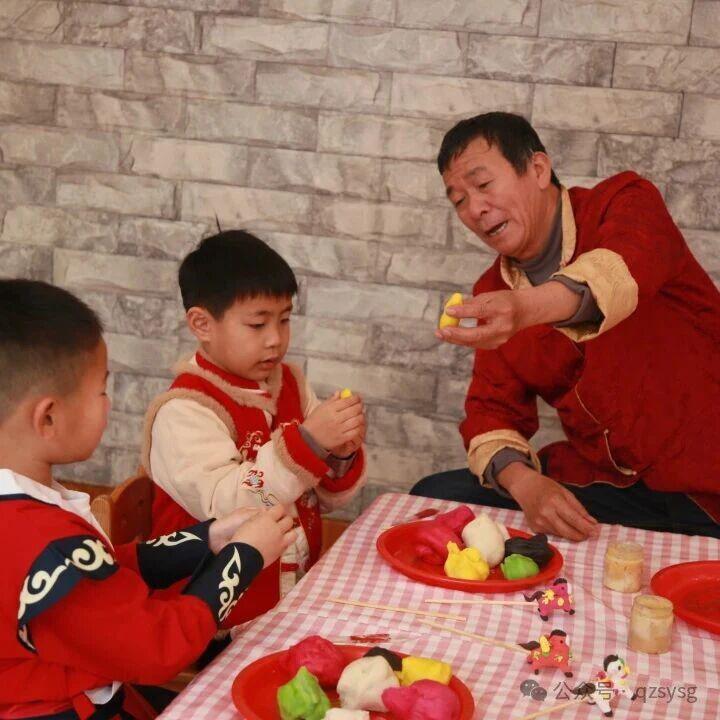 孩子们捏制憨态可掬的妆糕人