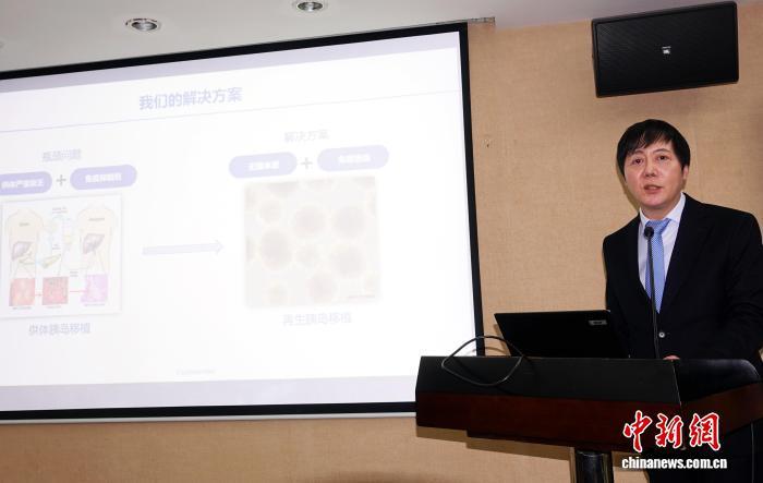 3月17日,上海长征医院殷浩教授向媒体介绍研究成果的临床试验相关情况。中新网记者 孙自法 摄