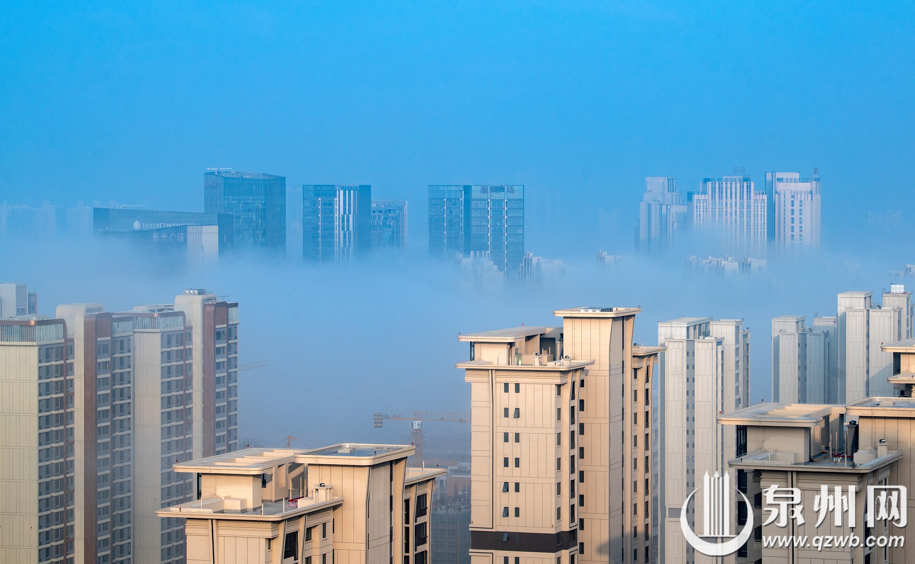 3月18日清晨,泉州湾出现平流雾,缓缓流动的雾气涌向东海片区。泉州晋江大桥的主塔和附近楼宇在雾气中若隐若现,此情此景,让人不禁有身处“天上宫阙”的感觉。(通讯员何艳归 融媒体记者陈起拓 图/文)