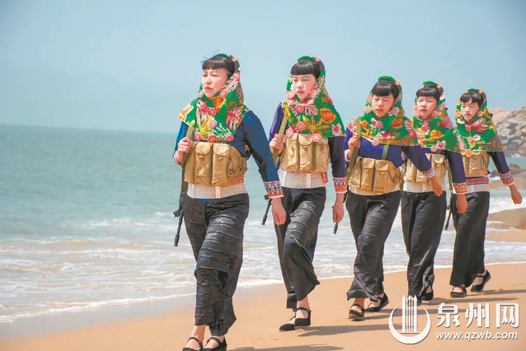 她们身着惠女服饰,手握钢枪,在风口浪尖站岗放哨,撑起家庭与家园的双重重担:她们既是渔家女儿,也是海防哨兵;既操持家务,又苦练军事本领。
