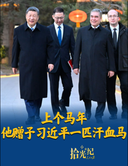 3月18日,国家主席习近平会见土库曼斯坦民族领袖、人民委员会主席别尔德穆哈梅多夫。2014年,别尔德穆哈梅多夫曾赠予中方一匹汗血马。“推动中土关系像汗血宝马一样马不停蹄、一马当先”,一起回顾中土的“骏马外交”。