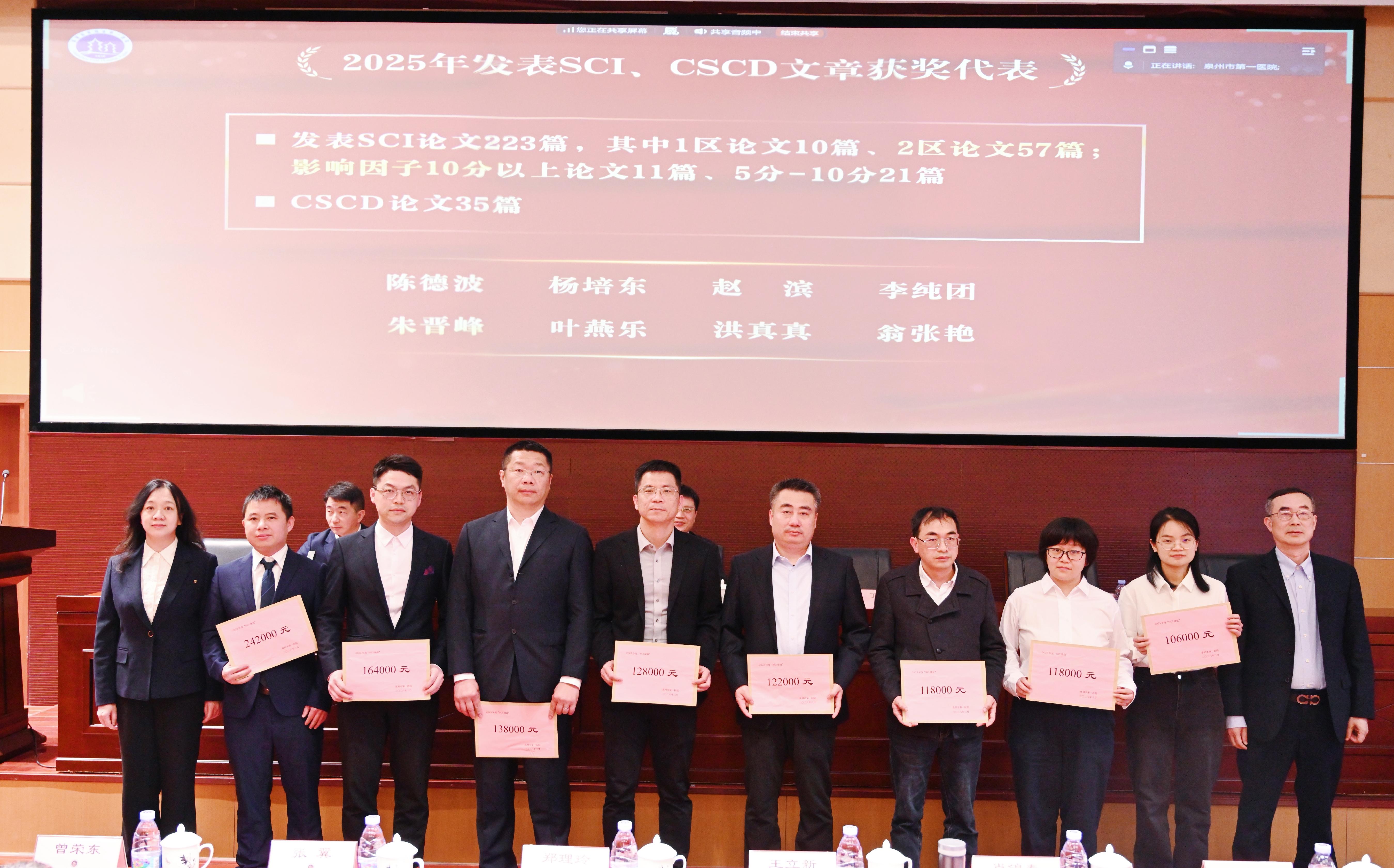 会上宣读了2025年获各级各部门表彰的集体和个人名单。随后,院领导先后为2025年度先进科室、先进工作者及发表SCI、CSCD文章获奖人员等颁奖。同时,该院2025年度“‘和敏奖’·十佳医护团队”名单也正式公布。