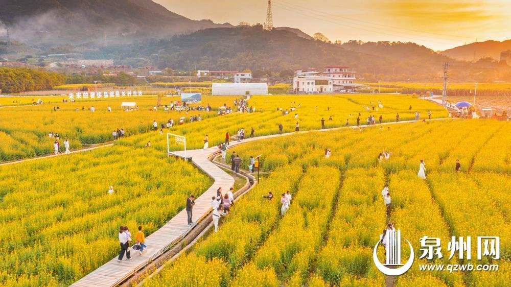 春暖花开,万物峥嵘。位于永春县石鼓镇卿园村的“一县一溪一特色”田园风光项目,成片的油菜花争相绽放、色彩迷人,吸引众多的游客前往观赏休闲、拍照留念。图为近日游客徜徉在油菜花海里。