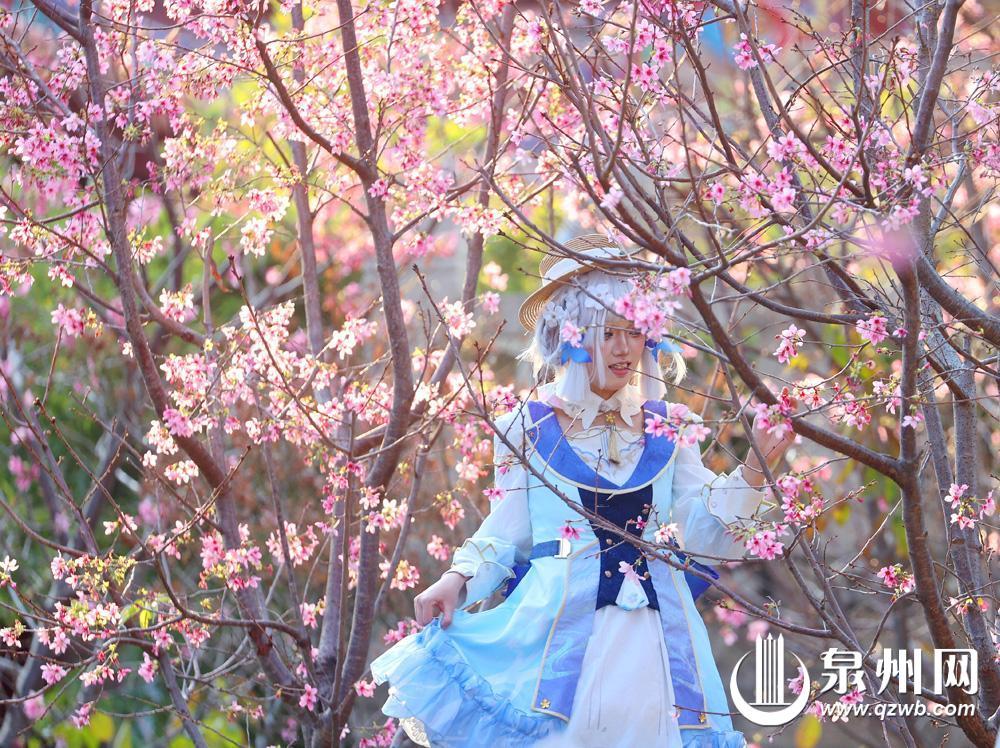 今日春分,泉州古城春意盎然,正是赏花好时节。图为:泉州崇福寺,盛放的樱花暖阳下争艳,吸引市民前来赏花游玩。(王柏峰/摄)