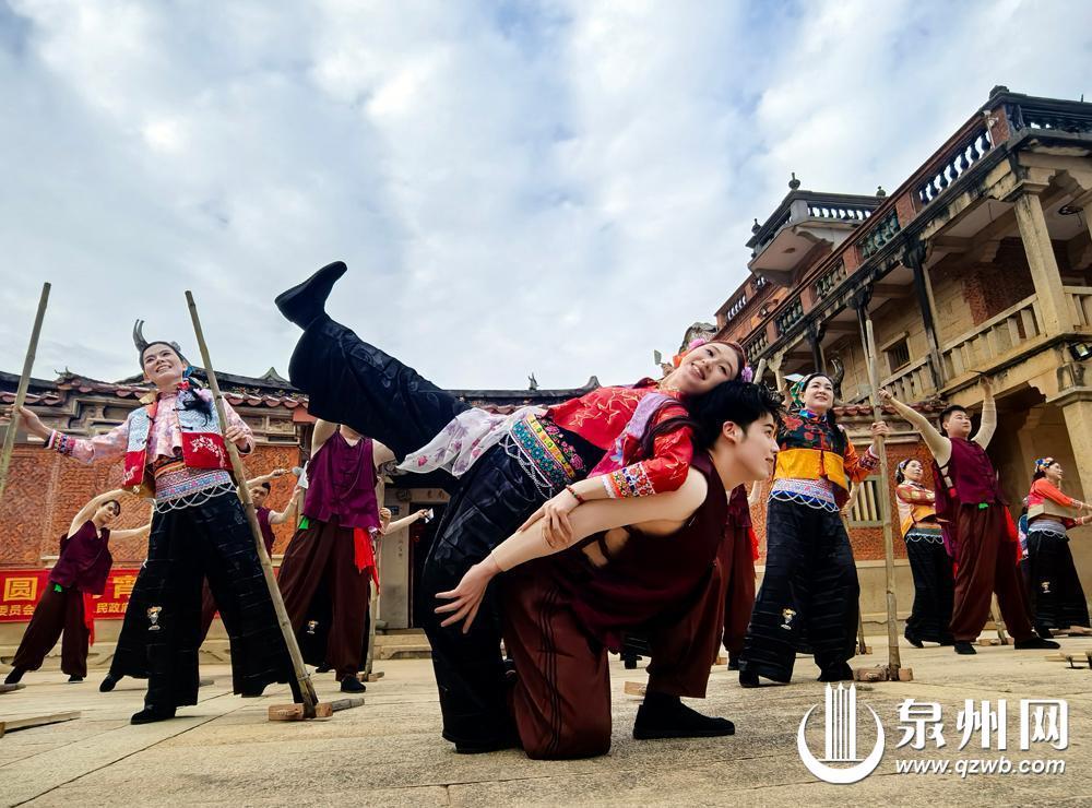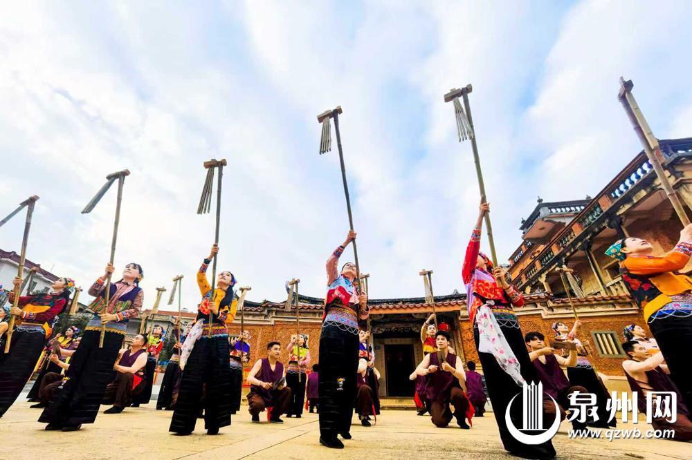 随着竹笕快速敲击的清脆声响,舞者们精准踩点跳跃,脚步轻快有力,生动再现了传统农耕场景,那是惠安县螺阳镇人用竹笕“敲”出的文化记忆。