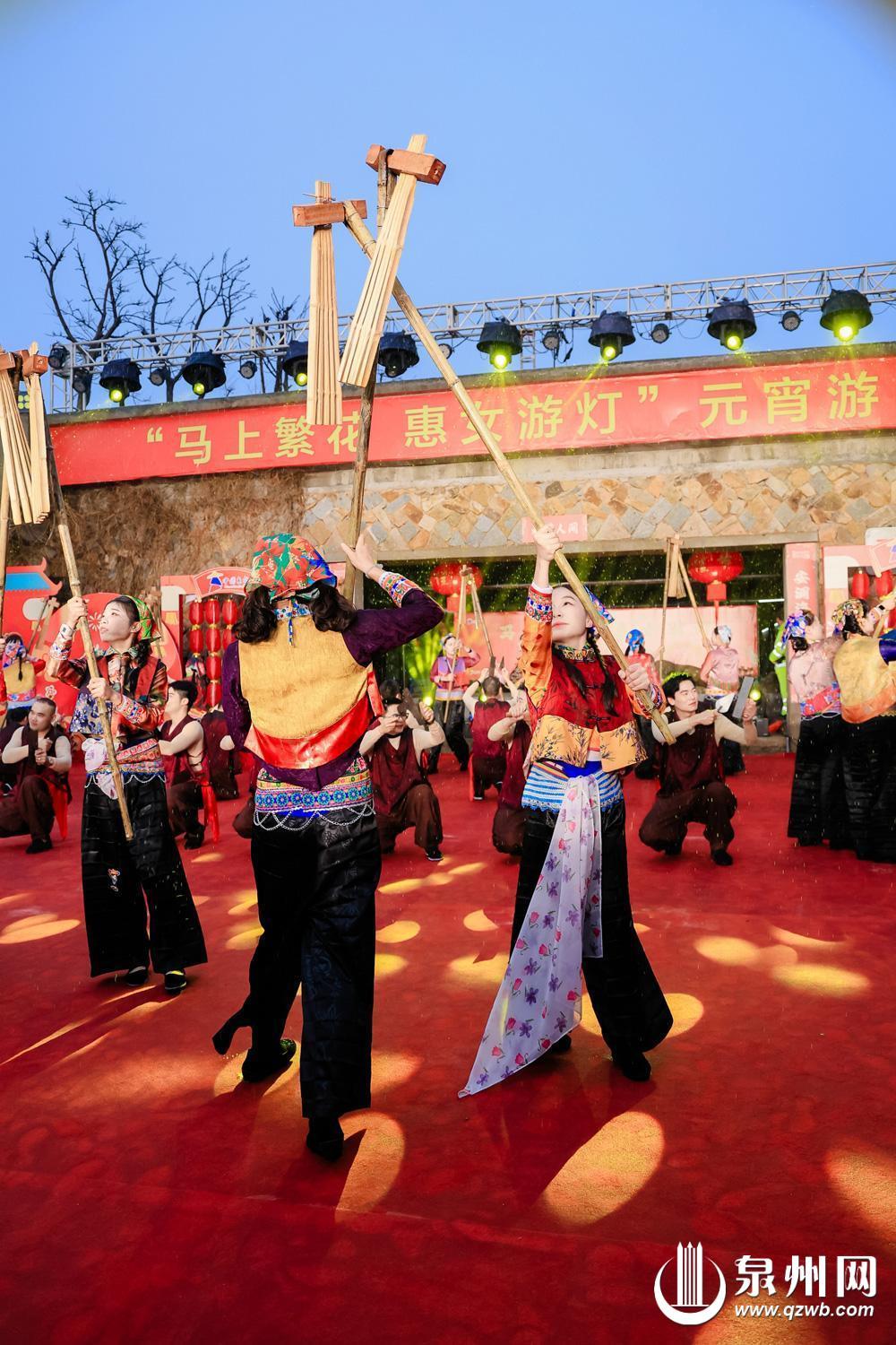 这,便是来自惠安县螺阳镇的竹笕舞。在“马上繁花·惠女游灯”元宵游园活动现场,这支源于明代打谷场的古老舞蹈,穿越时空,以原始的力量和现代的编排,绽放出新时代的光彩。