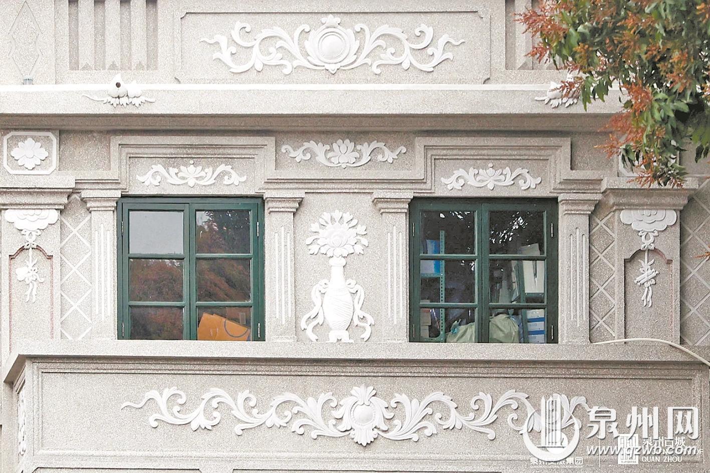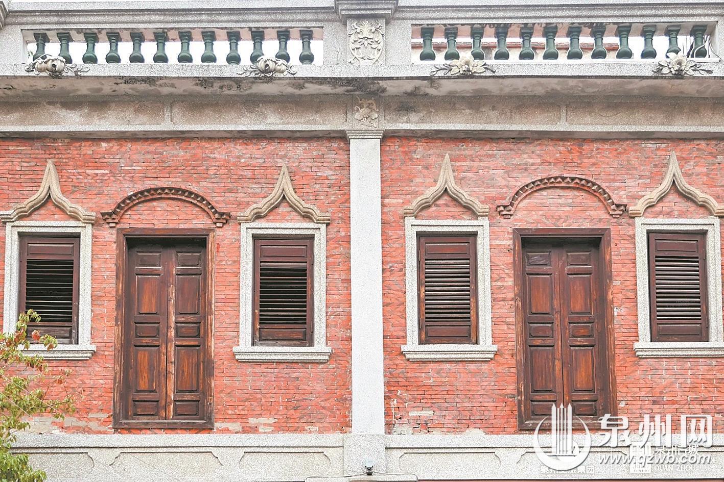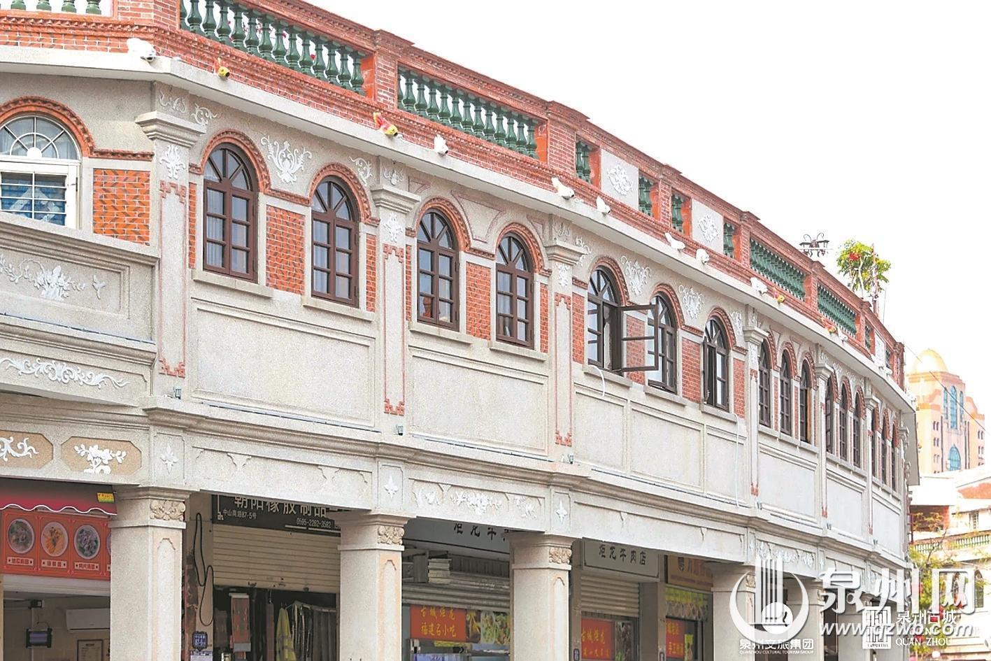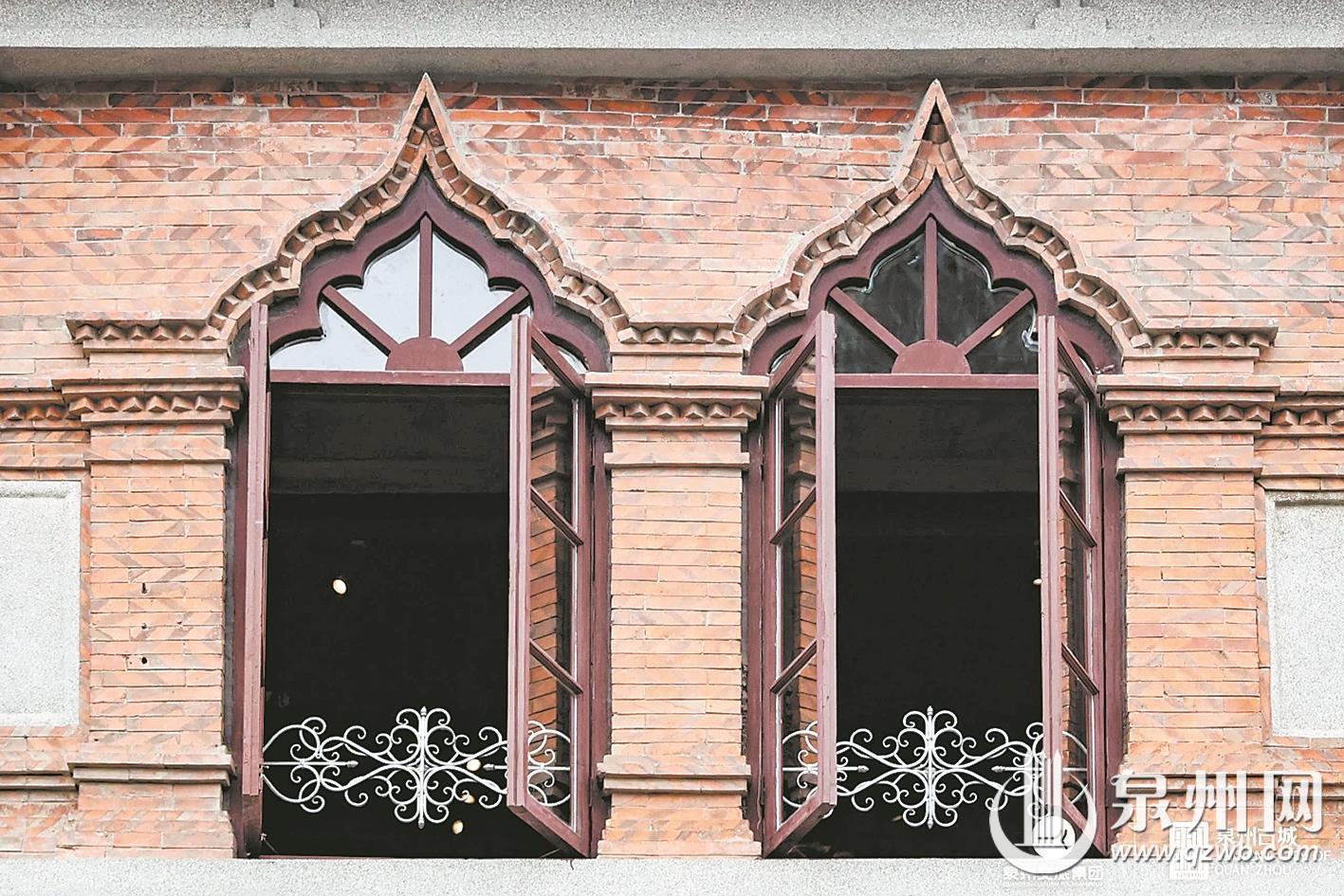 完整的骑楼窗套,自上而下分为窗楣、窗柱、窗台三部分。自洋楼窗式工艺传入泉州后,本地工匠取其精华、融会贯通,让骑楼窗形成了独树一帜的中西混搭风格。窗楣处常见伊斯兰样式的多层线脚,利落且富有层次,一旁还搭配着闽南世俗花鸟图案。窗台之下嵌入的特色花砖,与异域线条相映成趣,成为中山路独有的建筑表情。夹于窗间的临街货门更具烟火气,这一专为上下传货设计的特殊构造,成为骑楼商业街百年商贸的鲜活印记。