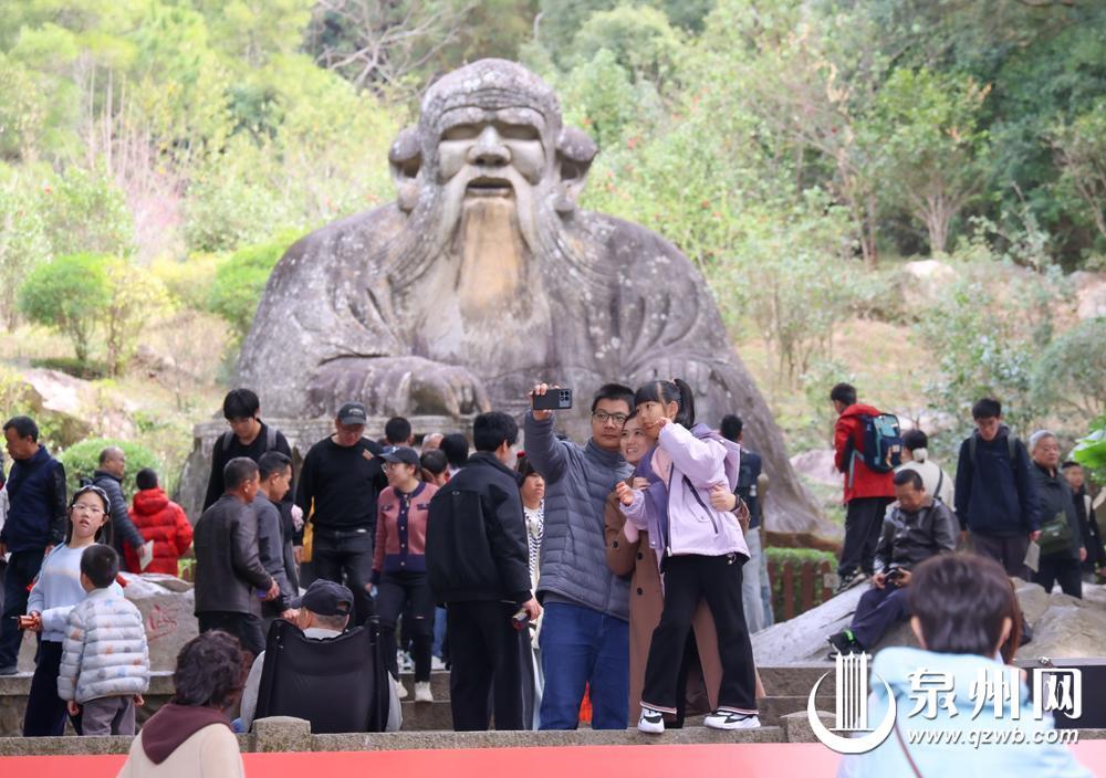 市民、游客在泉州清源山老君岩前驻足打卡(郑银杰 摄)