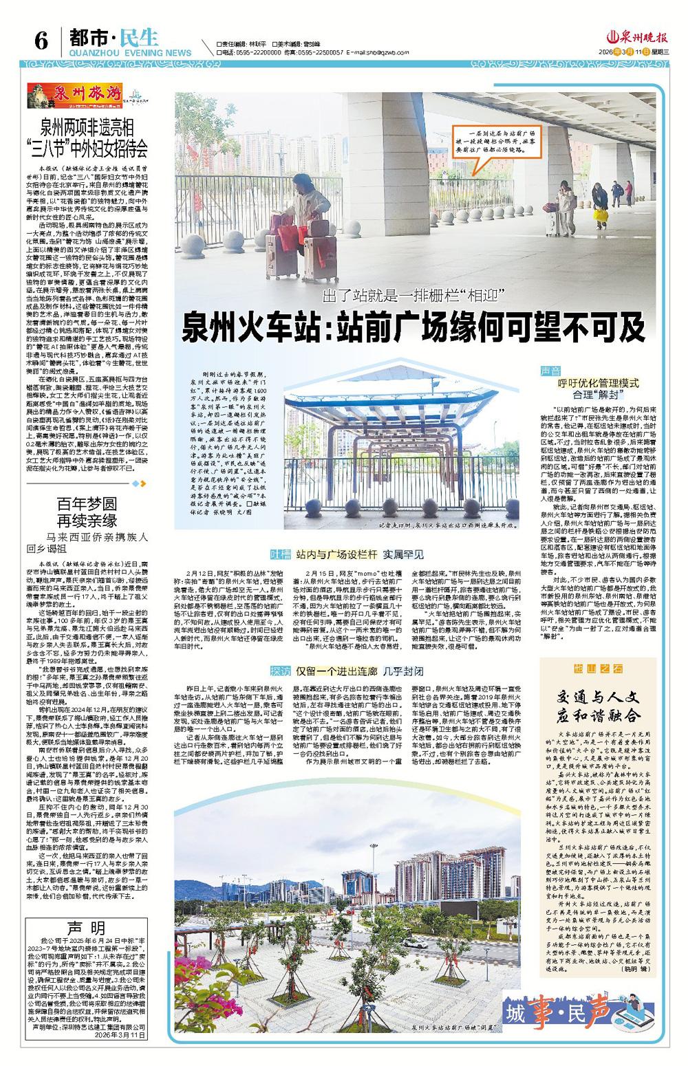 系列报道在泉州晚报社新媒体刊发后,后台留言持续不断,网友对站前广场优化的关注热度不减,建议频出。