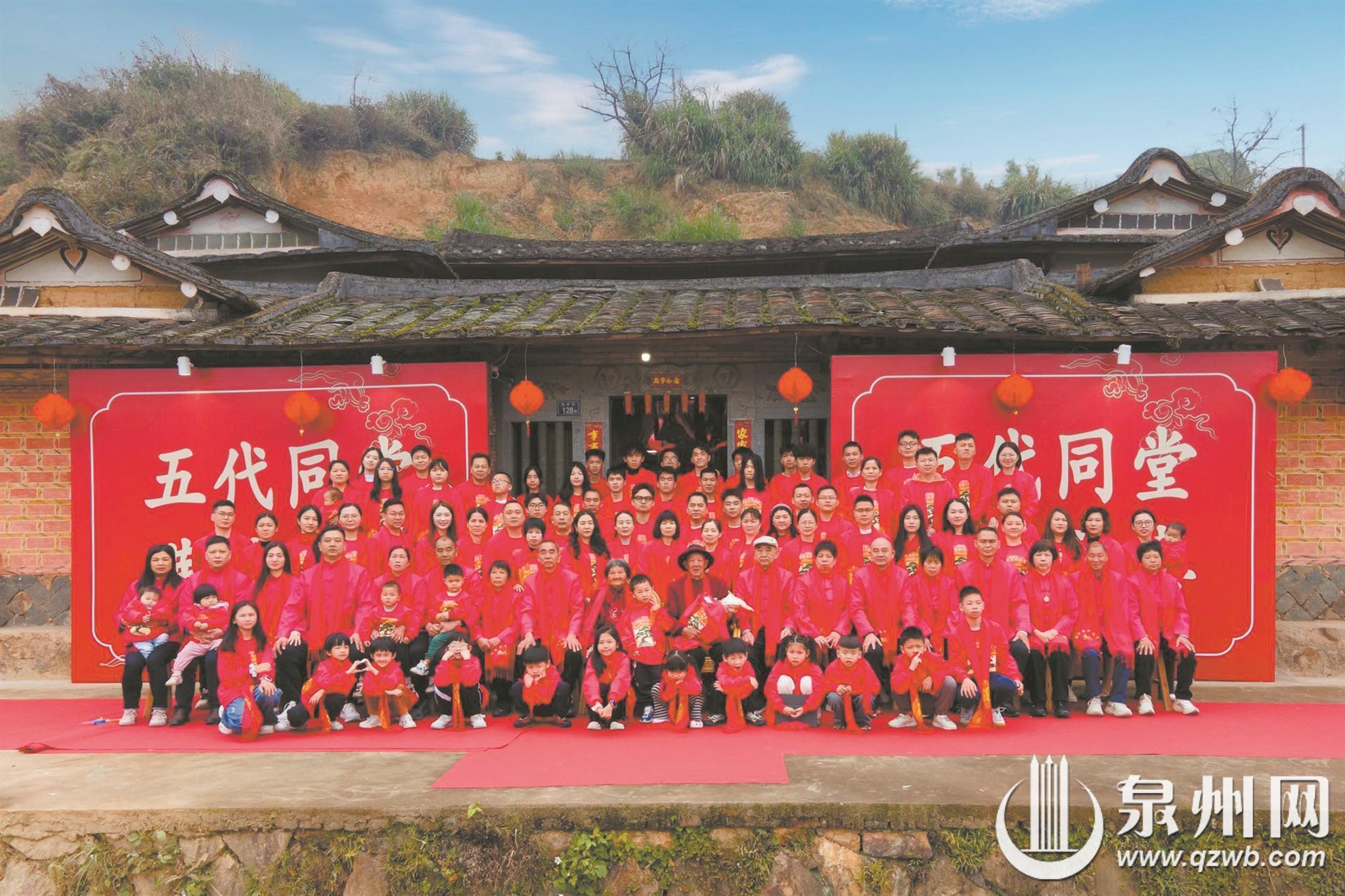 “人都到齐了,大家快来拍照!”当天上午8时30分许,益岭村郑氏祖宅前渐渐热闹起来,郑氏族人陆续赶来,现场按辈分有序排起队伍。随着相机“咔嚓”一声,一张珍贵的五世同堂全家福被定格。照片里,95岁的郑教房和老伴陈满被儿孙们簇拥着坐在中间,刚满月的玄孙在他怀中安睡,孩子的曾祖父母坐在高祖父母左侧,祖父母、父母分列后排,五代人血脉相连,笑意盈盈。
