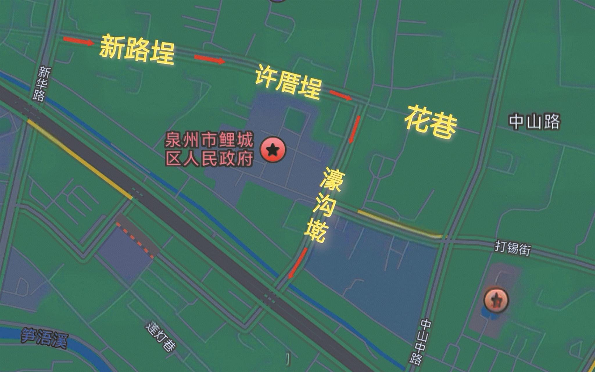 据了解,为进一步优化古城交通环境,缓解核心区域交通拥堵,保障道路交通安全、有序、畅通,鲤城交警大队结合古城交通管理实际,决定对新路埕-许厝埕-花巷-濠沟墘路段交通组织试行调整。具体调整如下:一、新路埕—许厝埕—花巷—濠沟墘全天实行机动车(含“小白公交”等公共交通工具,应急救援车辆除外)单向通行,通行方向为新路埕→许厝埕→花巷→濠沟墘。濠沟墘(庄府巷至花巷路段)禁止机动车自南向北行驶,新路埕-许厝埕-花巷路段禁止机动车自东向西行驶。二、濠沟墘(花巷至西街路段)、花巷(濠沟墘至中山路路段):除住户居民登记的机动车外,禁止其他机动车通行。三、为保证单行道通行顺畅,新路埕—许厝埕—花巷—濠沟墘全段禁止停放机动车。四、非机动车可双向通行,按照现场停车引导标识在指定地点停放。五、如遇重大节假日或大型文旅活动需根据交通流量情况另行调整交通组织方案或采取交通限制措施,将提前发布通告。
