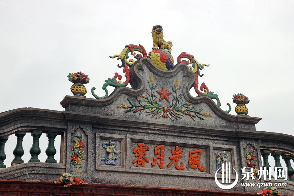 “埕头间”在闽南建筑物中较为常见,通常是指位于石埕边缘的小型附属房间,原多用作堆放杂物的储藏间,有些也作为小店铺使用。林连和民居的“埕头间”为二层建筑,二楼山墙正中央有一方“风光月霁”水泥剪瓷匾额,左右还彩塑了寿星、仙姑形象,令人心神舒畅。明代泉州理学家苏濬在其《鸡鸣偶记》中即称:“风光月霁,是吾心太虚真境;鸟语花阴,是吾心无尽生意。”这方匾额也展现了楼主旷达的胸襟。整栋“埕头间”建筑如今既当茶室,也兼为储藏间,功能可谓多样。