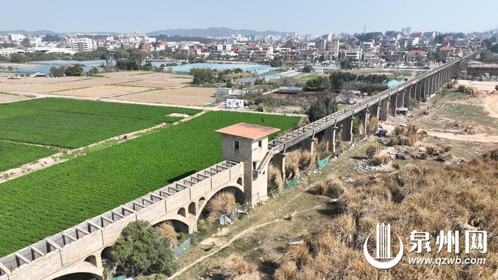 渡槽又称“飞渠”、高架渠,是跨越河流、山谷等障碍的架空输水建筑物,让水流“凌空而过”,实现水资源跨地形调配。福林村福林渡槽(也叫“檀林渡槽”,2018年列入晋江市优秀传统建筑名单)展现了当时人们艰苦奋斗、改造自然服务生产生活的巨大努力和手工缔造“天河”的奇迹与荣耀。据史料记载,20世纪60年代,泉州市新华电灌工程开始动工建设,以解决泉州南部区域干旱灾害问题。1973年,从狮仔山电灌站通往晋东南的灌溉水渠开建,即石狮大仑渡槽(2010年因结构老化被拆除)和福林渡槽。