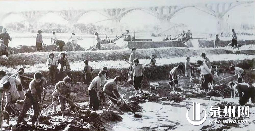 20世纪70年代修建渡槽的现场留影(福林村供图)