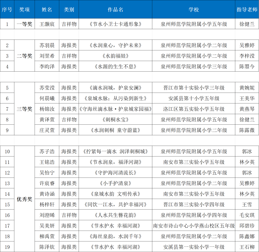 泉州网3月27日(记者郑鸿隆)由泉州市水利局、泉州晚报社联合主办的“节水护水·幸福河湖”青少年主题创意作品大赛,自启动以来备受瞩目。历经初步筛选、网络投票与专家终审,获奖名单今日正式揭晓!