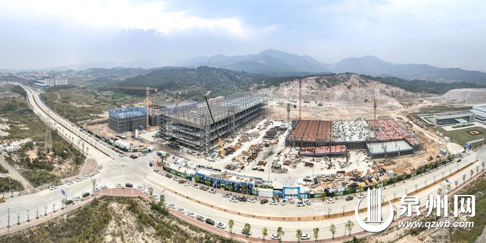 我市各重点项目建设全力推进、热潮涌动,多个项目按下“加速键”,冲刺关键节点。昨日,记者在位于南安市官桥镇的中通快递闽台总部项目建设现场看到,塔吊挥舞巨臂精准吊运建材,工人有序忙碌着。该项目定位为闽台总部及对台贸易总部运营中心、结算中心,打造区域性高端智慧物流产业园区,力争明年4月投产。 (融媒体记者林劲峰 吴宗宝 摄)