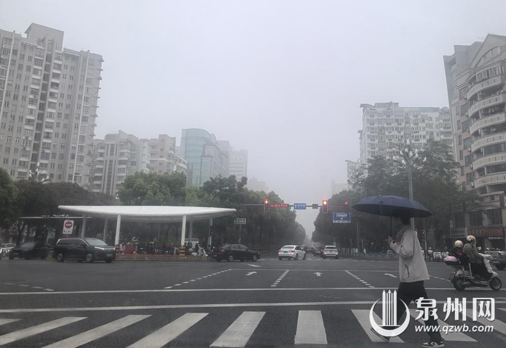 泉州市区大雾弥漫,天空一片白茫茫。(柏峰/摄)