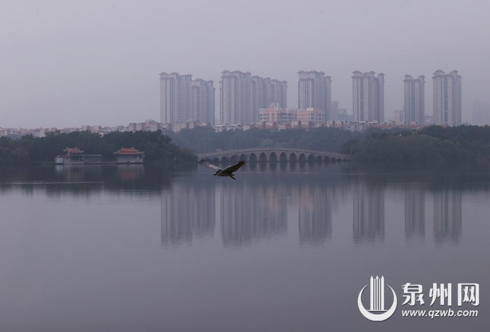 泉州西湖公园笼罩在朦胧的雾气之中(柏峰/摄)