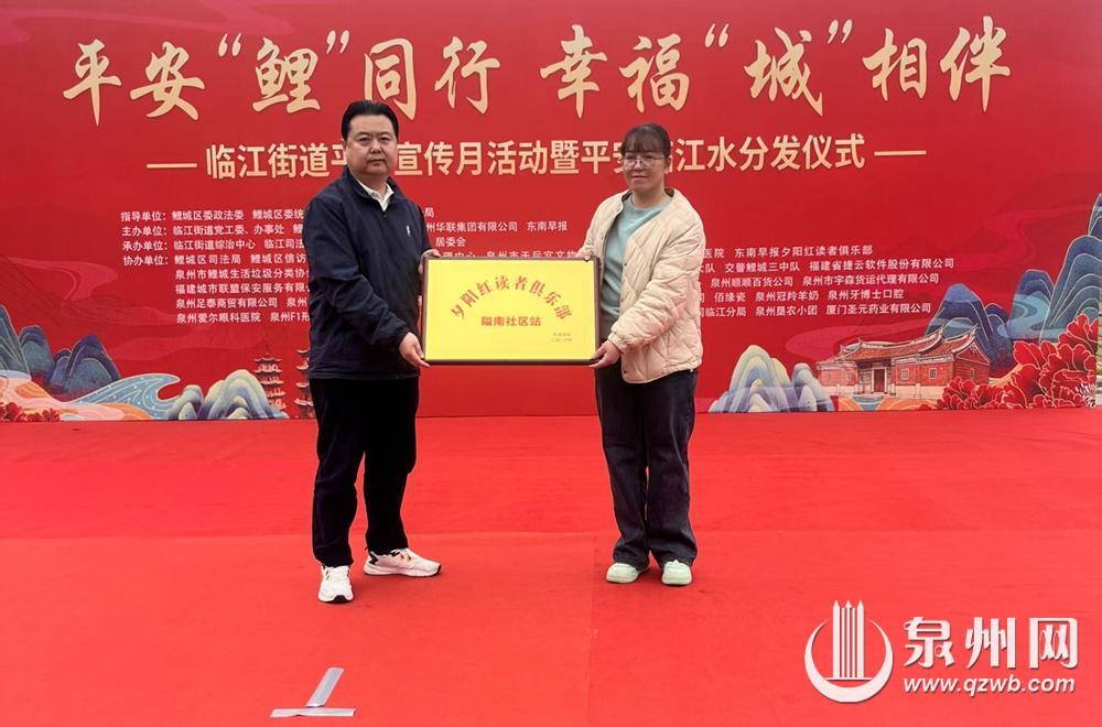泉州网3月31日讯(融媒体记者陈玲红 通讯员杜剑平 林玮煊 文/图)3月28日上午,鲤城区临江街道德济门遗址广场举办平安宣传月主题活动。现场,东南早报“夕阳红”读者俱乐部在隘南社区设立的新站点正式授牌,同时,寓意平安祥和的“平安临江水”品牌发布,并向共建单位及一线工作者代表分发,标志着社区为老服务与平安共建工作深度融合。