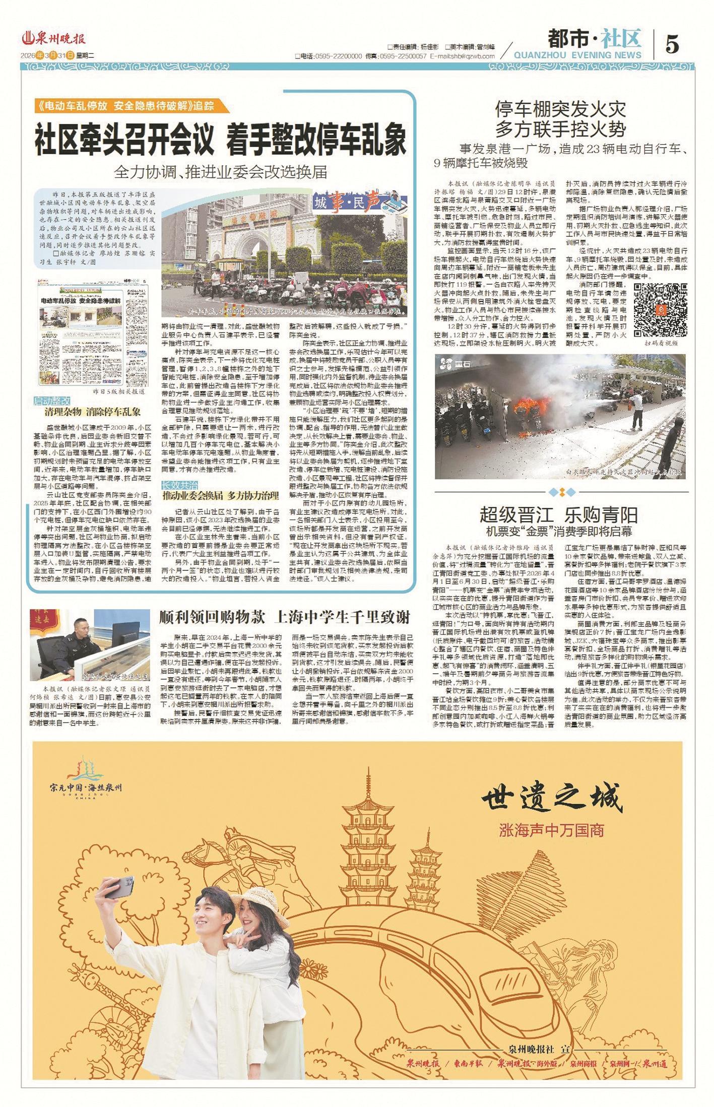 连日来,泉州晚报报道了丰泽区盛世融城小区电动车乱停放、架空层堆放杂物等乱象。相关报道刊发后,小区物业及云山社区迅速反应,进行了初步整改。昨日,为了进一步做好整改工作,丰泽区临海街道、云山社区及物业服务中心召开协调会集中商议,提出了多项措施,力图推动小区服务逐步完善。