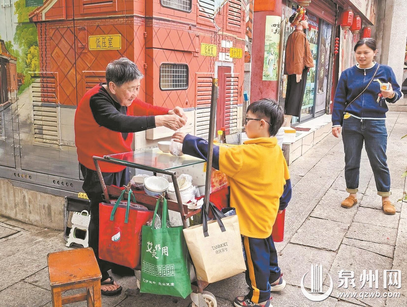 市民林女士是庄奶奶摊位的常客,家住浮桥的她每次来到古城,总会特意绕道而来,只为买上一份土笋冻,还会向路过的游客极力推荐。更令人感动的是,去年有一次台风来临,她看到庄奶奶仍坚持摆摊,便一口气“清空”100份土笋冻,带回家分享给亲朋好友。“庄奶奶卖的土笋冻好吃又实惠。”林女士说,她与庄奶奶相识已久,知道她家中的变故,对她既心疼又佩服。