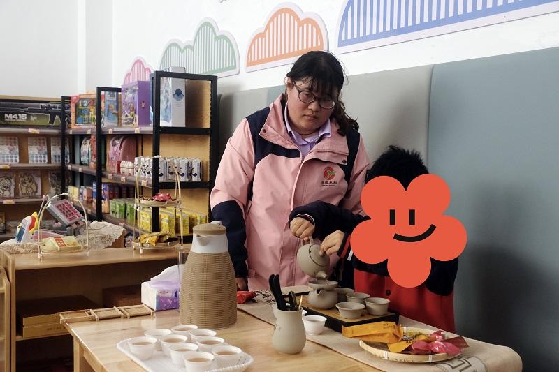星宝在星希望教室冲泡闽南功夫茶