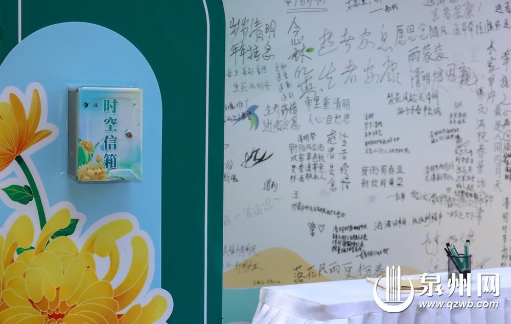 侨胞到宏福园可以在时空信箱处领取信纸,书写思念寄语。(郑银杰 摄)