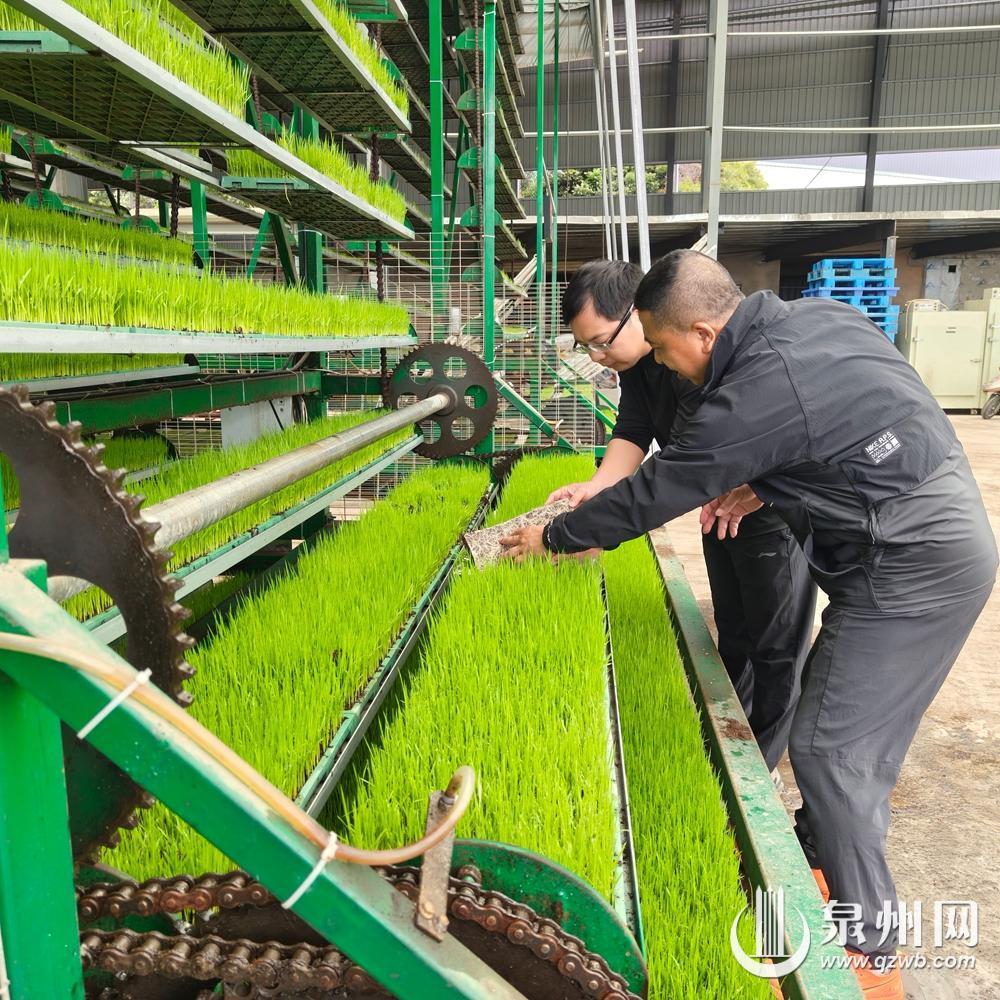泉州网4月3日讯(融媒体记者郭剑平 通讯员郑晓坚 文/图)“秧好一半禾,苗好七分收。”日前,记者在惠安县走马埭国家级现代农业示范区的坤德农场内看到,3台高大的立体循环运动式育秧设备正高速运转,盘盘嫩绿的耐盐碱水稻秧苗在智能呵护下,经过20天生长已经舒展枝叶,郁郁葱葱,即将移栽到室外农田继续生长。