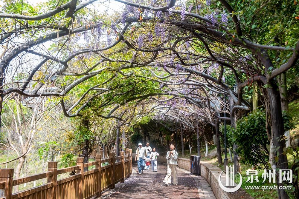 近日,德化县驾云亭公园的紫藤花迎来盛放期。(融媒体记者陈小阳 通讯员吴有森 陈春迎 摄)