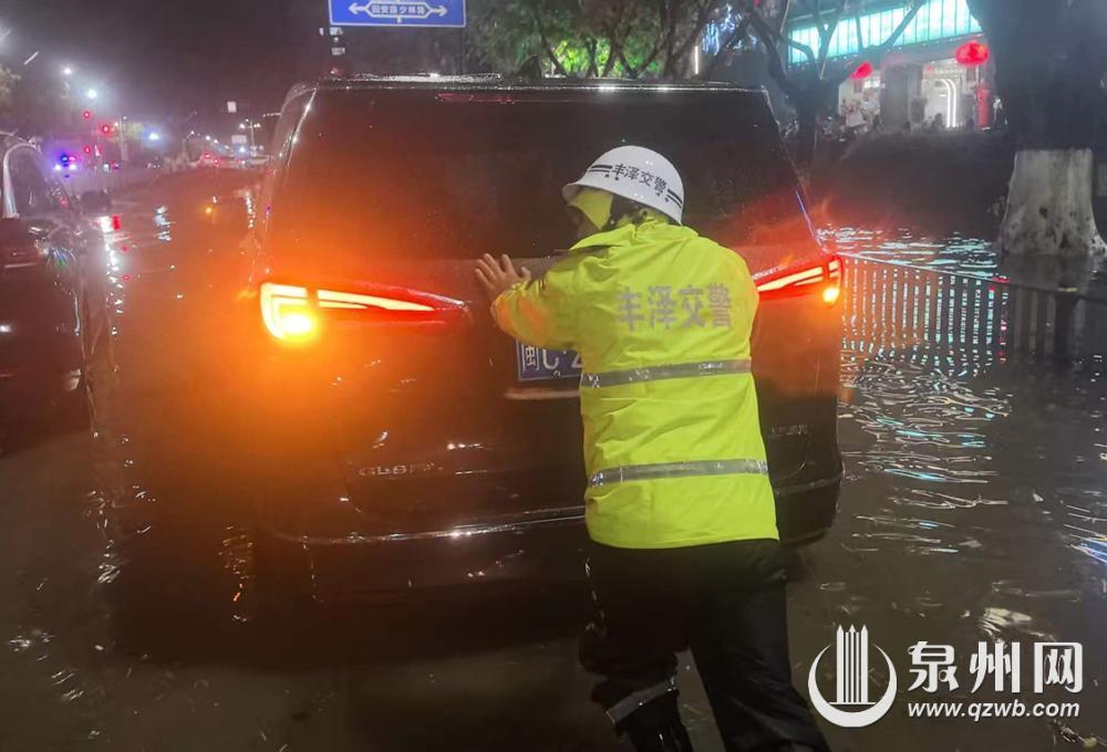 险情发生后,泉州交警第一时间紧急调配警力赶赴各个积水点位,全面加强路面交通安全管控与车辆分流引导工作。民警们在积水路段前方快速设置警示标志、锥桶,划定危险区域,反复喊话提醒过往驾驶人减速慢行、绕行避险,避免贸然涉水引发故障;针对降雨导致的路面断枝、杂物等障碍物,民警徒手清理,及时打通受阻路段;发现车辆涉水熄火被困后,民警们合力上前推移受困车辆,将其转移至安全地带,逐一消除各类安全隐患,全力保障道路通行秩序。
