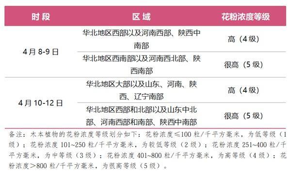 中国天气网讯 国家卫生健康委、中国气象局4月7日18时联合发布未来一周花粉浓度预报服务提示: