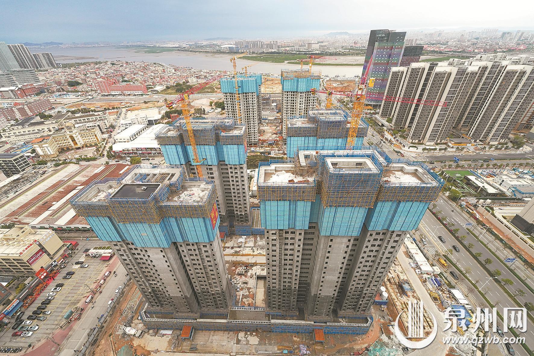 昨日,记者从泉州城建集团获悉,位于东海中央活力区金崎片区的城建·乐居和祥苑小区已全面封顶,目前正加快推进砌体、幕墙等后续施工,力争今年6月实现全面落架。