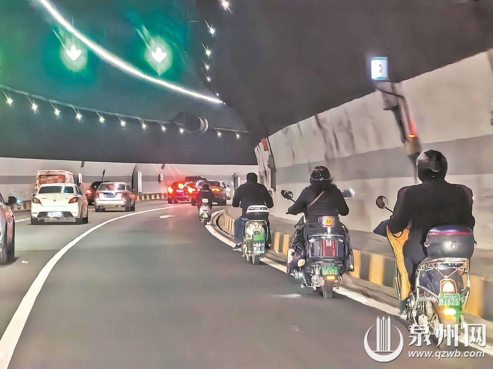 这种“蝴蝶效应”在新开通的快速路上同样明显。连通东海与晋江、石狮的晋新路,开通仅数月便屡屡出现类似现象。而在中心市区北部快速通道老君大道,以及古塔山隧道、五台尾隧道内,不少电动车驾驶人不仅未佩戴安全头盔,更有甚者直接骑至中间车道,与呼啸而过的汽车争道。
